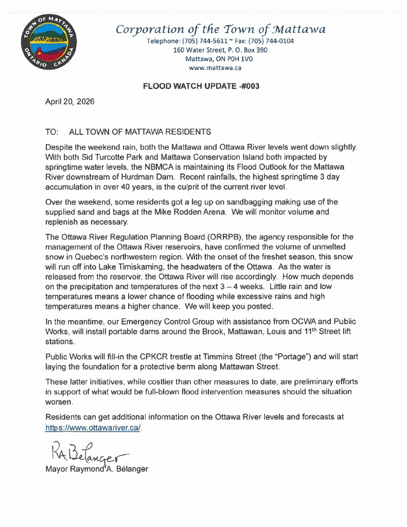 ALL RESIDENTS OF THE TOWN OF MATTAWA - APR 17, 2026