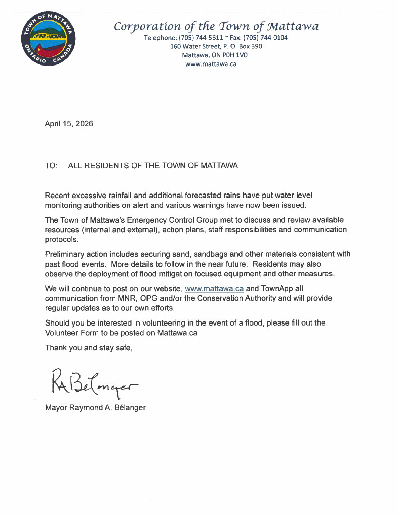 Notice is hereby given under the Municipal Act, S.O. 2001, c 25, as amended, that Council of the Town of Mattawa intends to adopt the 2026 Water & Wastewater Rates at its Regular Council meeting on February 23, 2026 at 6:00 pm.